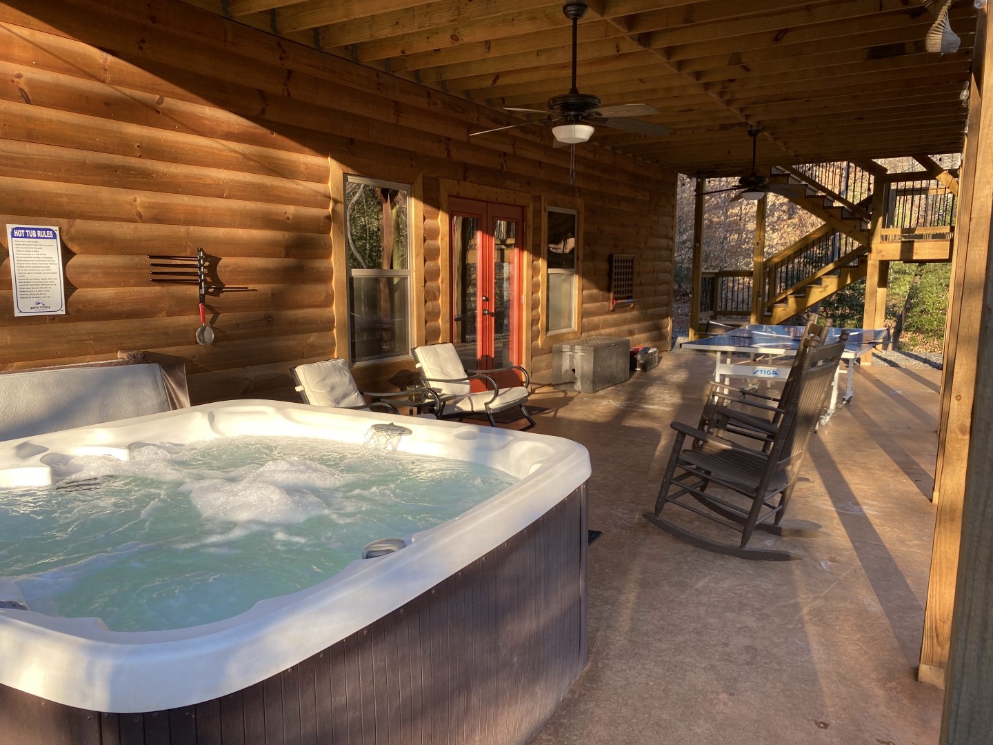 Our Foothills Family Retreat was designed with families and large groups in mind. The wheelchair-accessible cabin is pet-friendly (pet fee applies*) and work-friendly and features a hot tub, playground, volleyball court, fire pit, ping pong table, over 1100 sf of covered porch space and more. The cabin is located in Lumpkin County, near Dahlonega, and is also convenient to Cleveland, Helen, and many popular wineries and wedding venues.