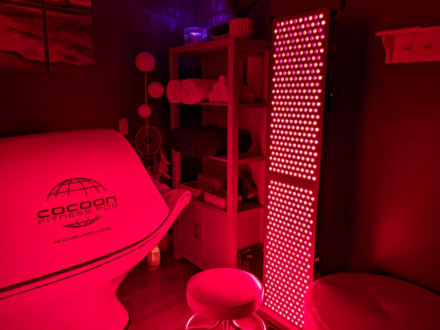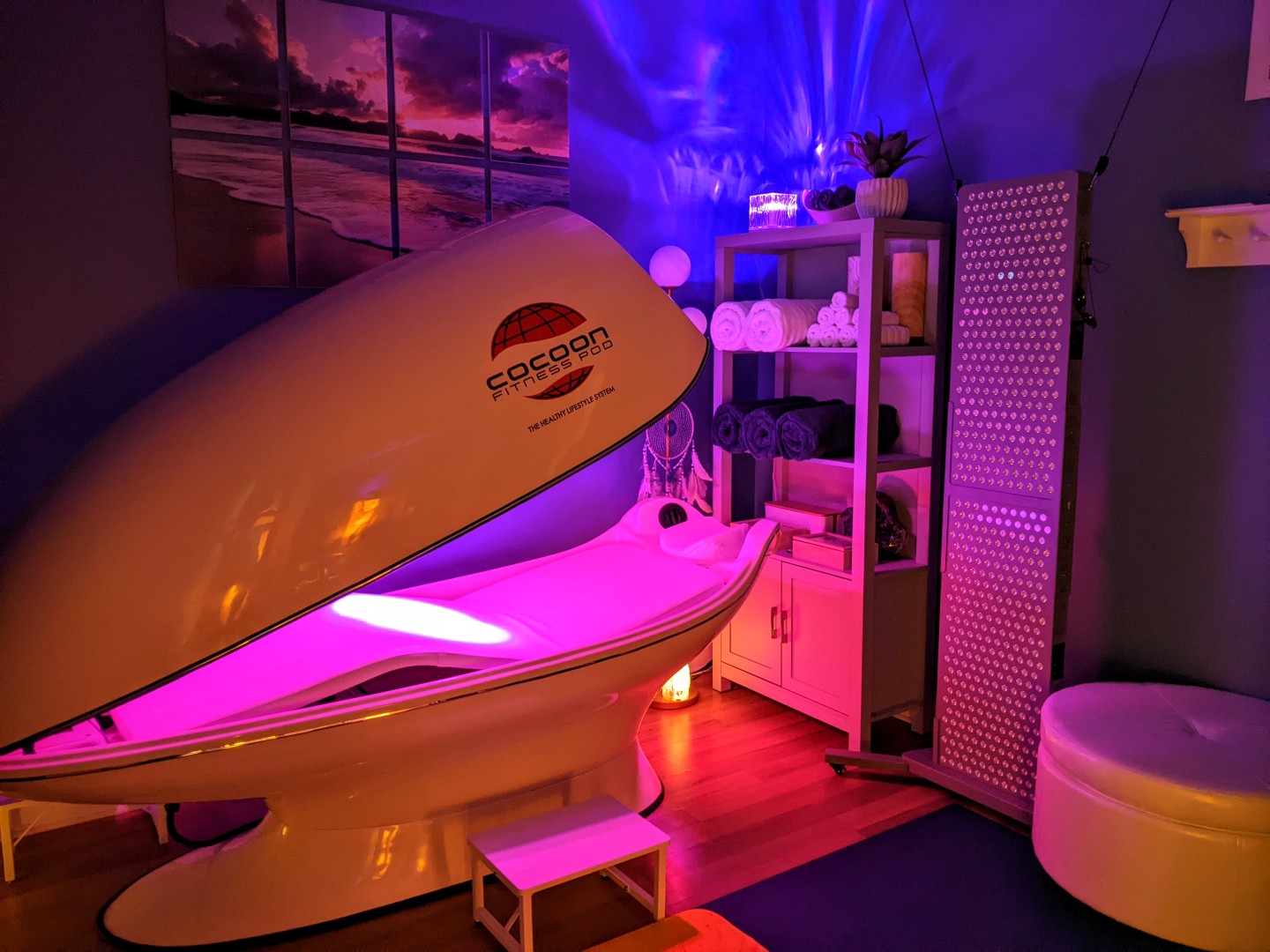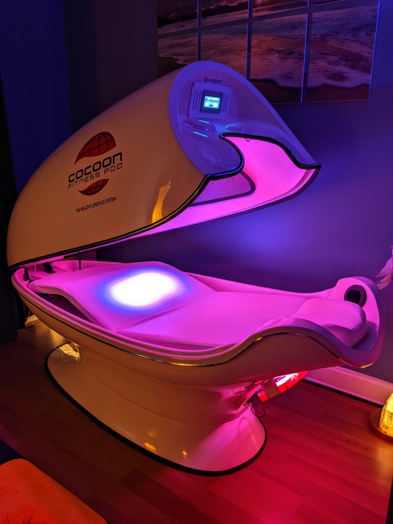 The Cocoon Fitness Pod is a futuristic wellness capsule that combines the best of thermal, vibration, and infrared sauna therapies. This multi-sensory treatment gently warms your body, helping to increase circulation, promote detoxification, and accelerate fat burning. The added benefits of vibration massage while inhaling Himalayan salt ionized air & aromatic essential oils of your choice create an immersive experience that leaves you feeling revitalized from the inside out.