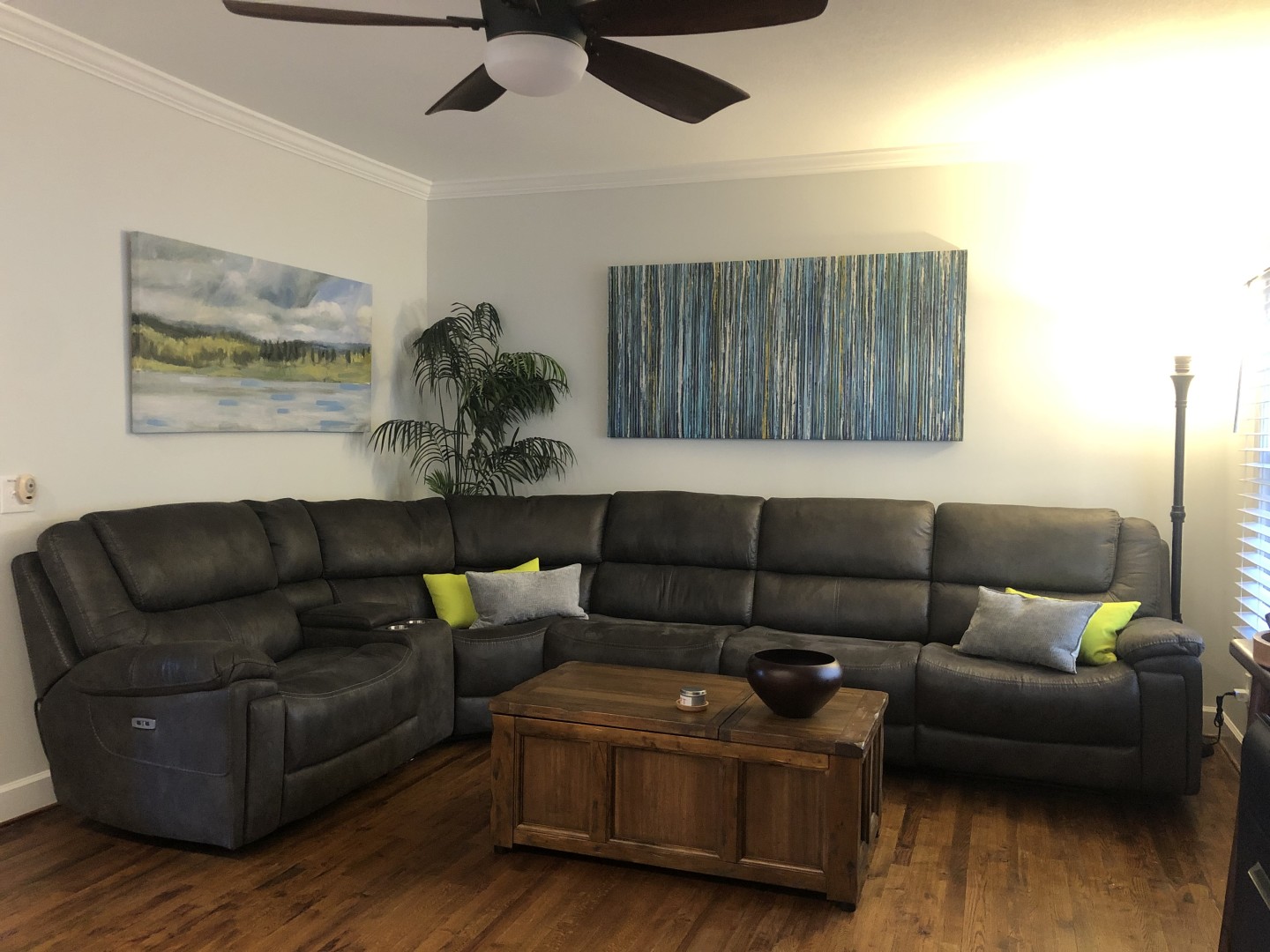 Yahoola Creek Cabin is the perfect destination for those seeking a rejuvenating place of peace with all the charm of the north Georgia mountains, nature, and adventure. This updated contemporary cabin was built in 1945 and is ideally located 3 miles from historic downtown Dahlonega with all award-winning restaurants, wineries, shopping, and nearby hiking on the acclaimed Appalachian Trail. The giant evergreen trees and sprawling lawn leads you to the calming Yahoola Creek for delightful walks and restful reflection with your favorite hammock. Our cabin is perfect for a romantic getaway or memorable family gathering. The cabin has two queen beds, a set of bunkbeds, and a toddler bed to accommodate four adults, two children, and one toddler.